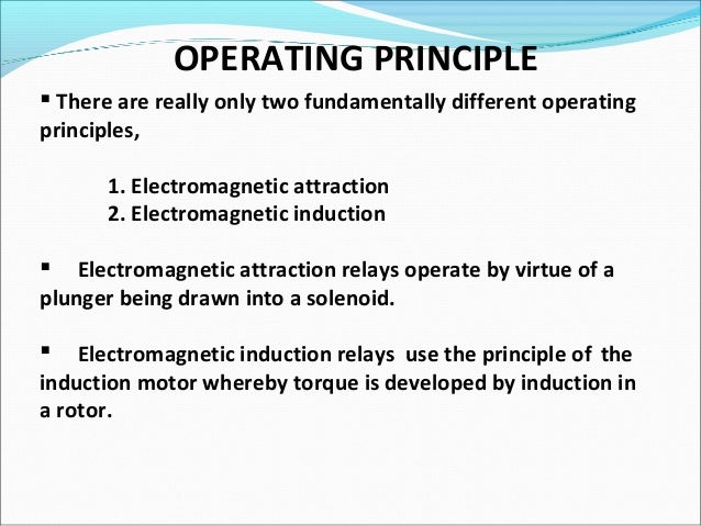 Electromagnetic induction relays operate on the principle of the induction motor and are widely used for protective relaying purposes involving a.c. When the net current in the operating coil is not zero, the relay trips. It consists of a set of input terminals for a single or multiple control signals, and a set of operating contact terminals. There are instances when you don't want. Relay operating principles may be based upon detecting these changes, and identifying the changes with the possibility that a fault may exist inside its assigned zone of protection.